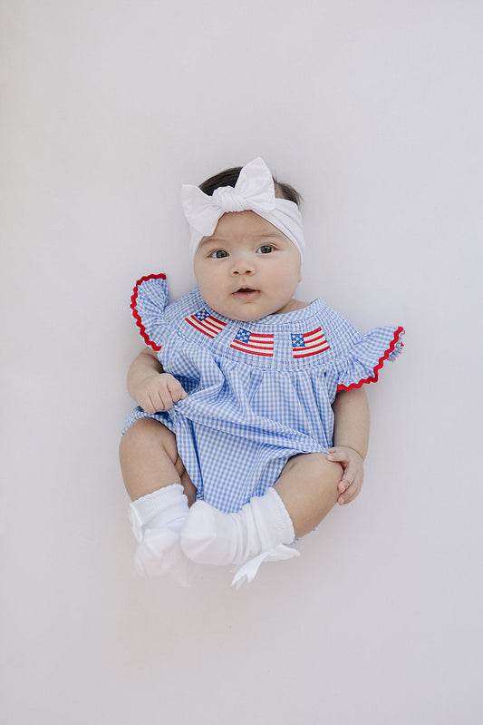 RED WHITE & BLUE STARS | SHORTIE ZIP ROMPER