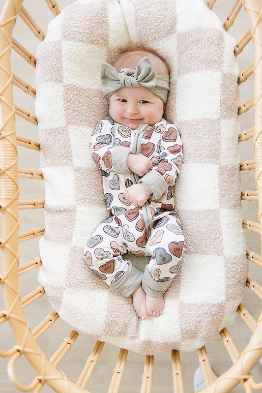 Checkered Hearts Ribbed Bamboo Cozy Set