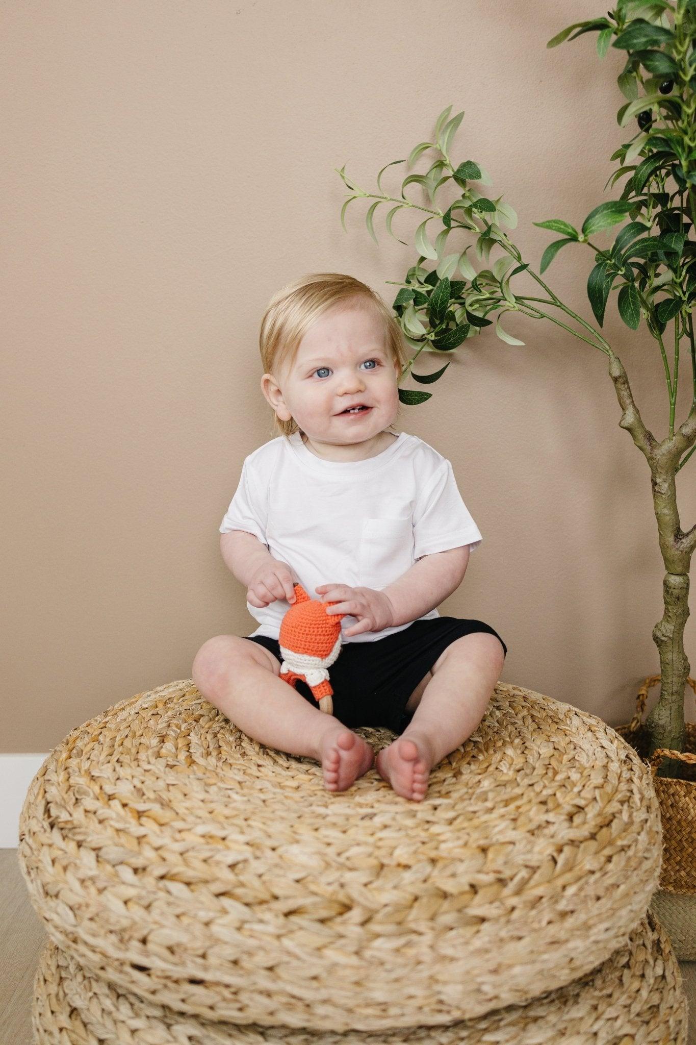 Meet our Bamboo Pocket Tee, a perfect blend of comfort and sustainability. Crafted from 220 gsm of luxuriously soft bamboo viscose (94%) and a hint of spandex (5%), this tee ensures gentle comfort and flexibility. Available in sizes from 0-3 months to size 5, it offers an ideal fit for your child at every stage. Upgrade your little one's wardrobe with this eco-friendly and supremely comfortable Bamboo Tee.