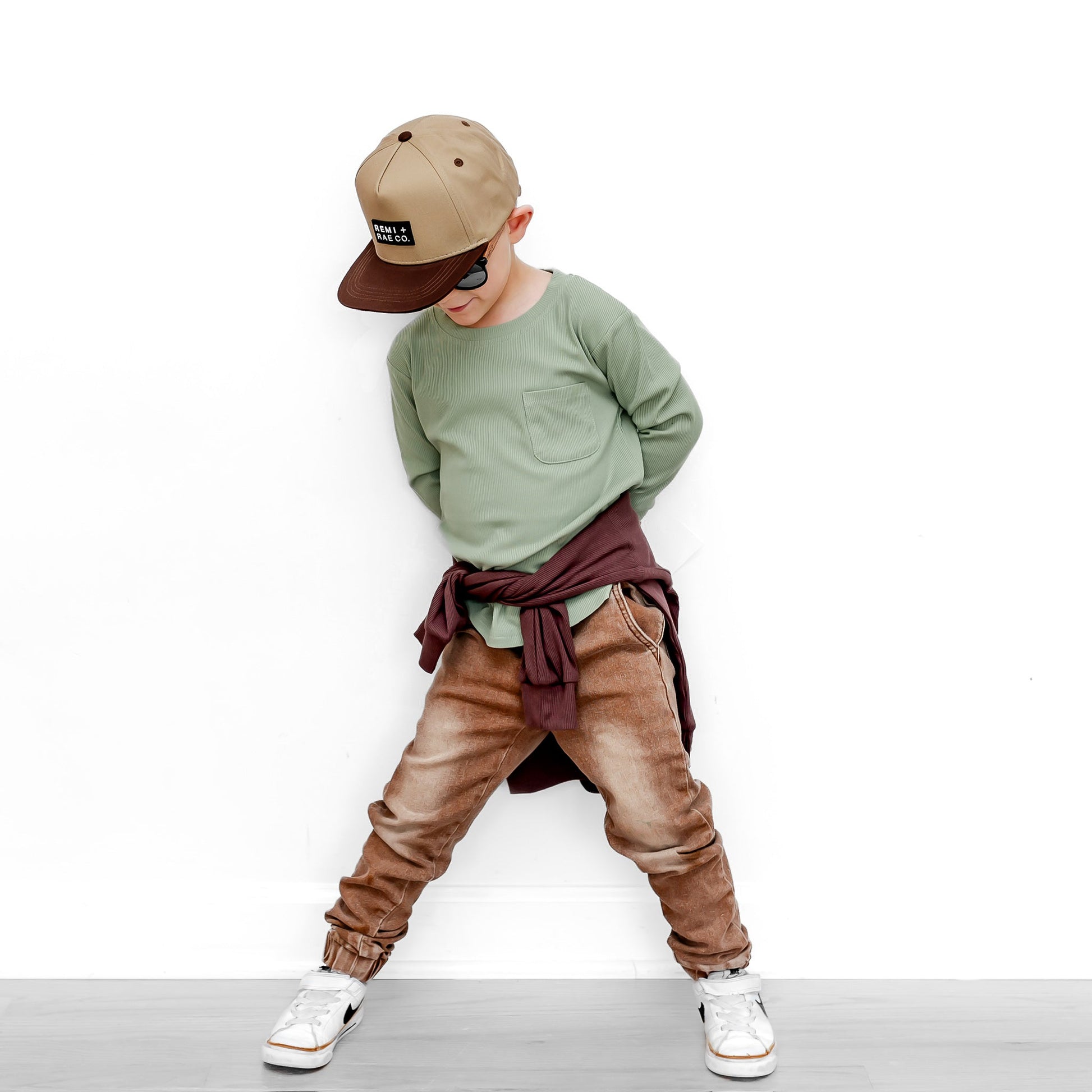 The Spring Breeze Collection, a Collection filled with the perfect transitional Winter to Spring colors. Our Bamboo Ribbed Long Sleeve Pocket Tees are made of our scrumptiously soft bamboo ribbed material; making them the best option for those with sensitive/eczema prone skin, and for those who love the extra comfort. Pair our Long Sleeves with all of our bottoms and matching Bow, or mix + match with our various options for an effortless look.