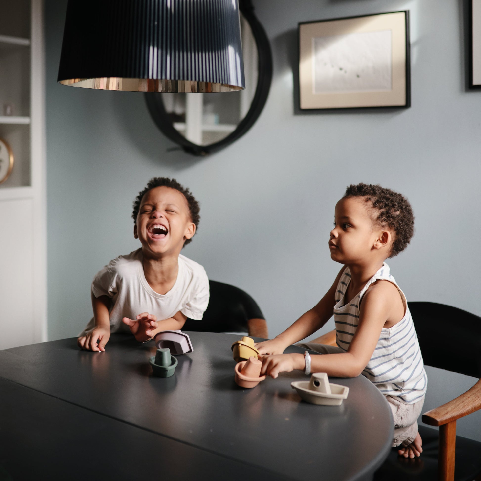 Set sail with our stackable bath boats that encourage independent water play for children of all ages. This set of five boats link together to create a fun floating train of toys. Designed in soothing colors out of non-toxic plastic to bring calm to bath time. Made in Denmark, these nautical classics will inspire the imaginations of even the littlest sailors.