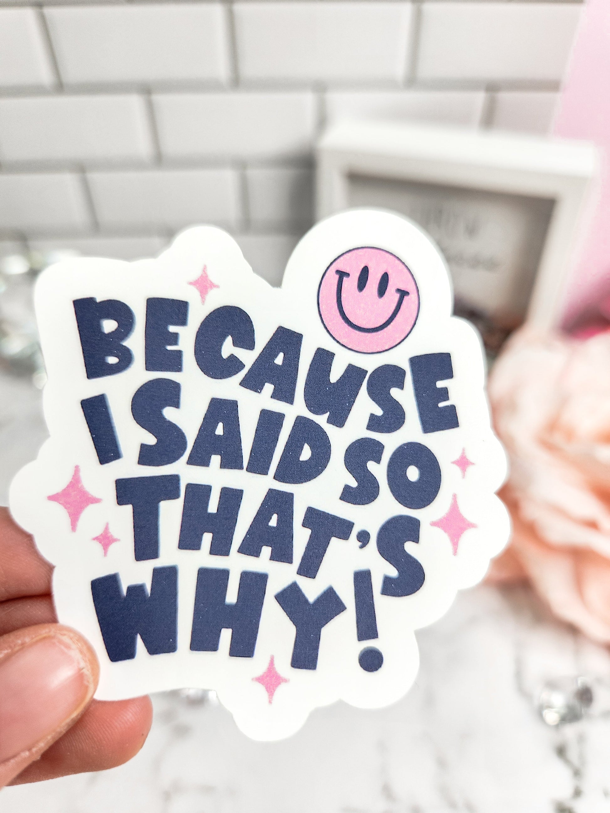 Because I said so is a cute stickers that you can use in your planner, to decorate your notebooks, laptops, cellphones, tumblers and more! Die cut stickers are designed by me in my WV home studio and cut using my silhouette cutting system!