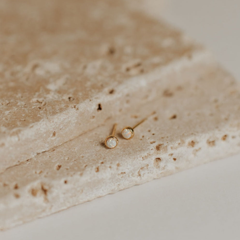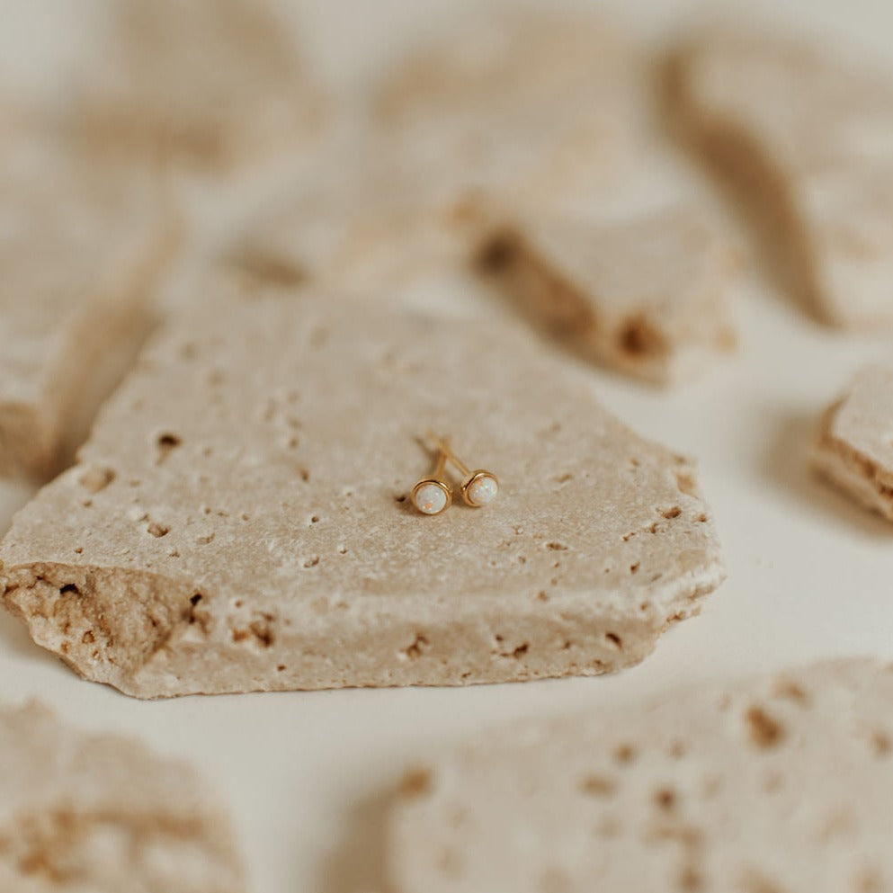 The Betty Opal Studs are the perfect, dainty earring that goes with everything! They are gold vermeil and are hypoallergenic, tarnish and wear resistant, and perfect for sensitive ears. Perfect for a first piercing or as a second/third piercing. Also works great as a helix!