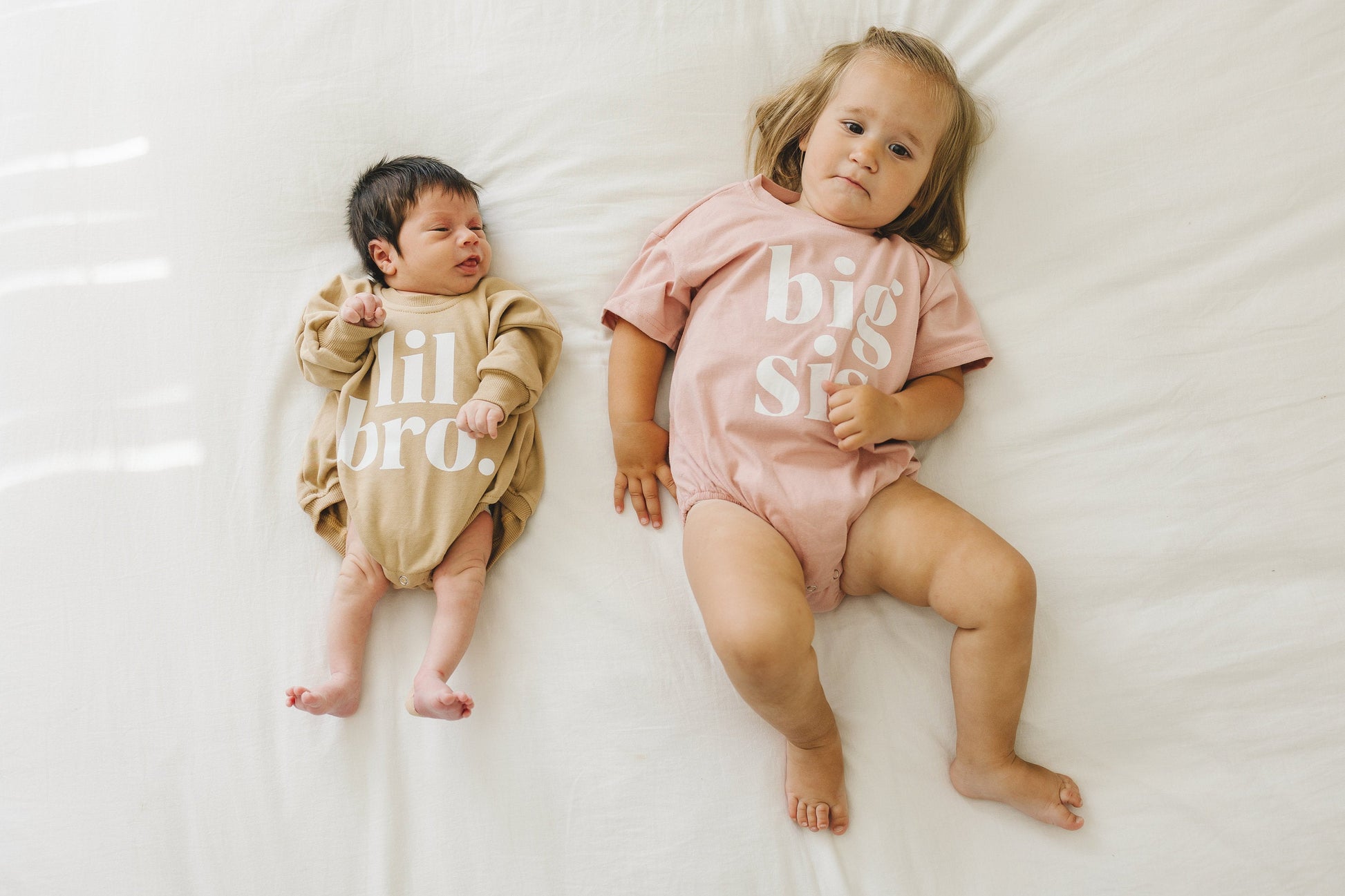 Whether it's a casual day at home or a special outing, the "Big Sis" Graphic T-Shirt Romper is the go-to outfit for your precious one. Treat your little girl to this adorable, comfortable, and versatile romper that celebrates sisterhood and makes dressing up an enjoyable experience for both of you!