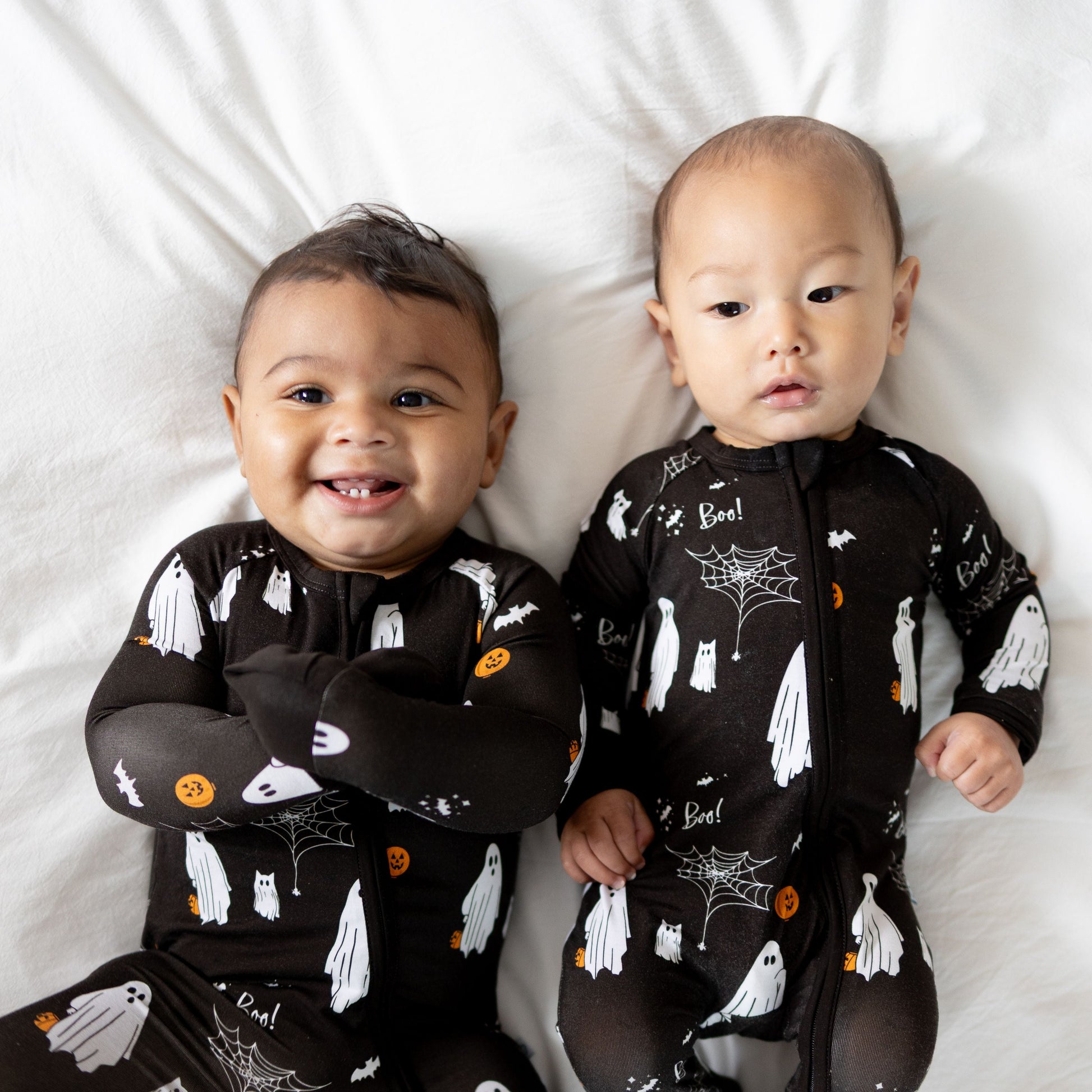 Spooky season just got a whole lot cuter! Our Boo Crew Halloween Romper is made from our signature buttery-soft bamboo fabric, keeping your little pumpkin comfy from playtime to bedtime. Featuring adorable ghosts, pumpkins, bats, and cobwebs on a jet-black background, it’s the perfect mix of festive fun and cozy comfort.