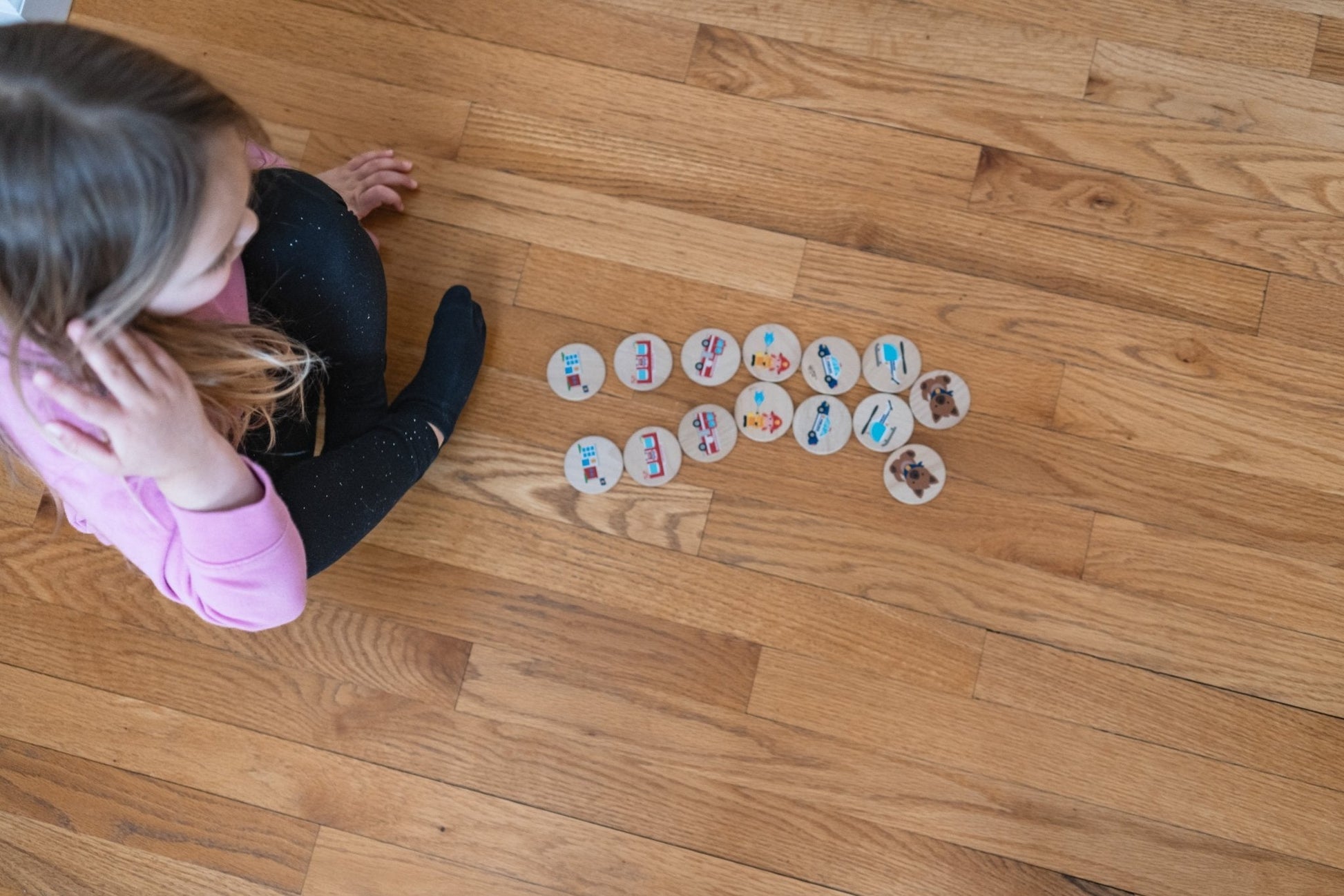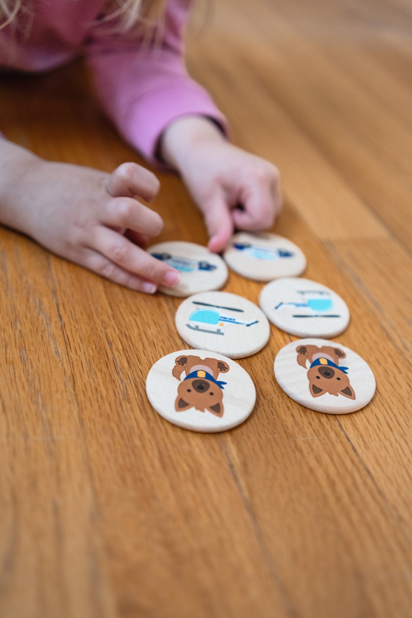They come to our rescue when we are hurt or in trouble so let's celebrate them with a matching game! This memory matching set consists of 12 designs featuring the heroes in our lives, First Responders, on 24 wooden tiles. It can be enjoyed solo or with the entire family - teaching kids to take turns and share with others. Our wooden matching tiles will also promote short term memory skills.