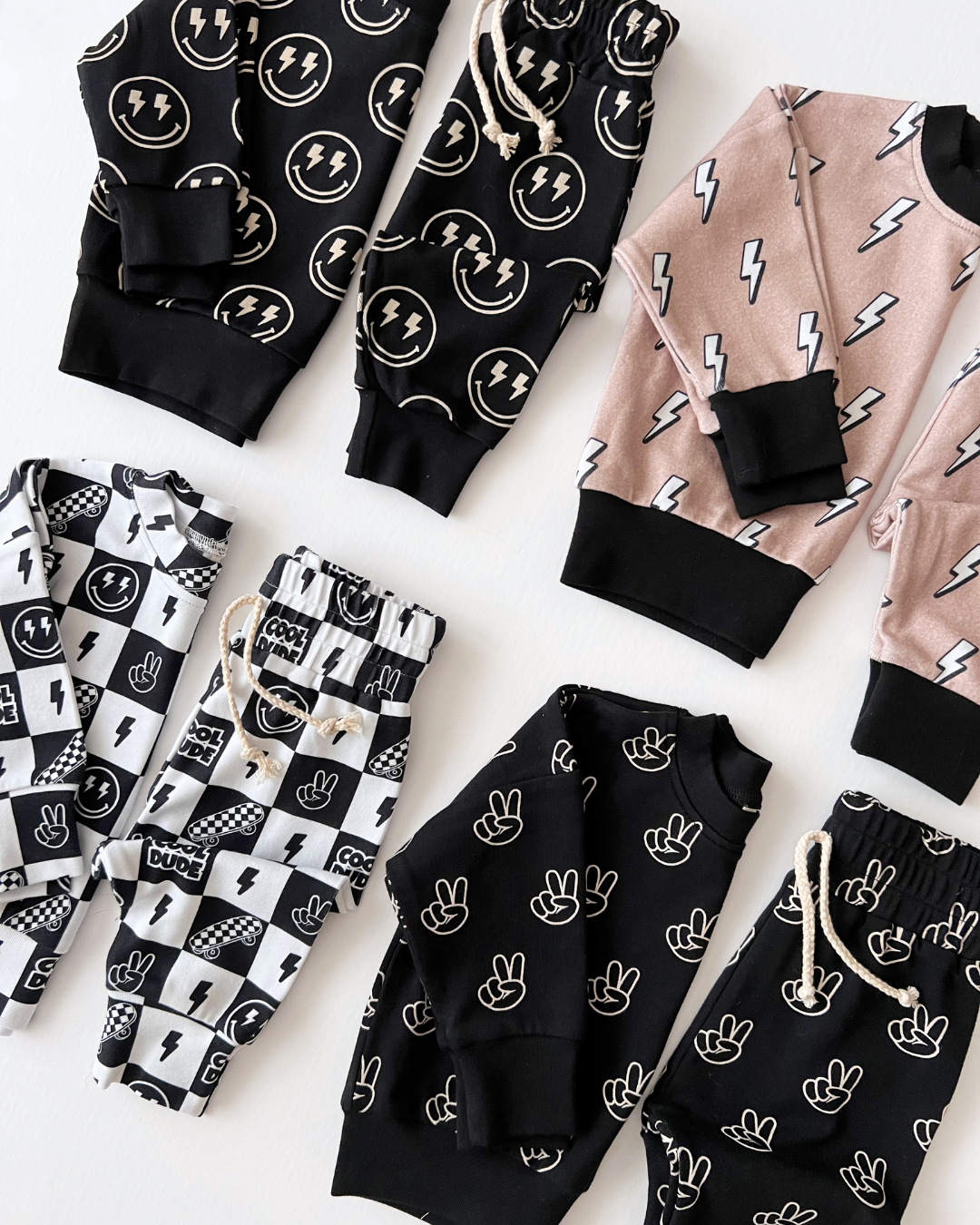 Good Vibes all around! This two-piece set is made of oh-so-soft cotton, perfect for daily lounging during the upcoming Spring months! Stylish enough for a day out, cozy and comfortable for play. Gender neutral and up to 9Y, this sweet and simple design will be your little one's favorite must-have!