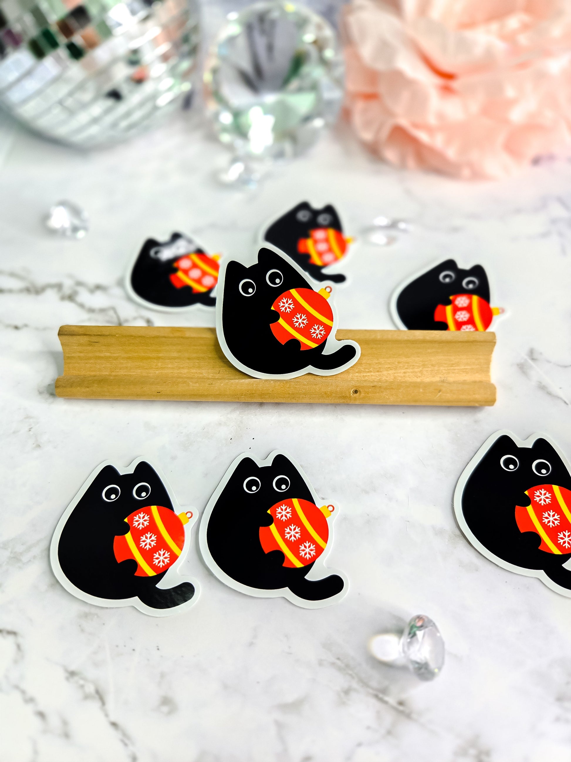 Kitty loves Christmas ornaments sticker