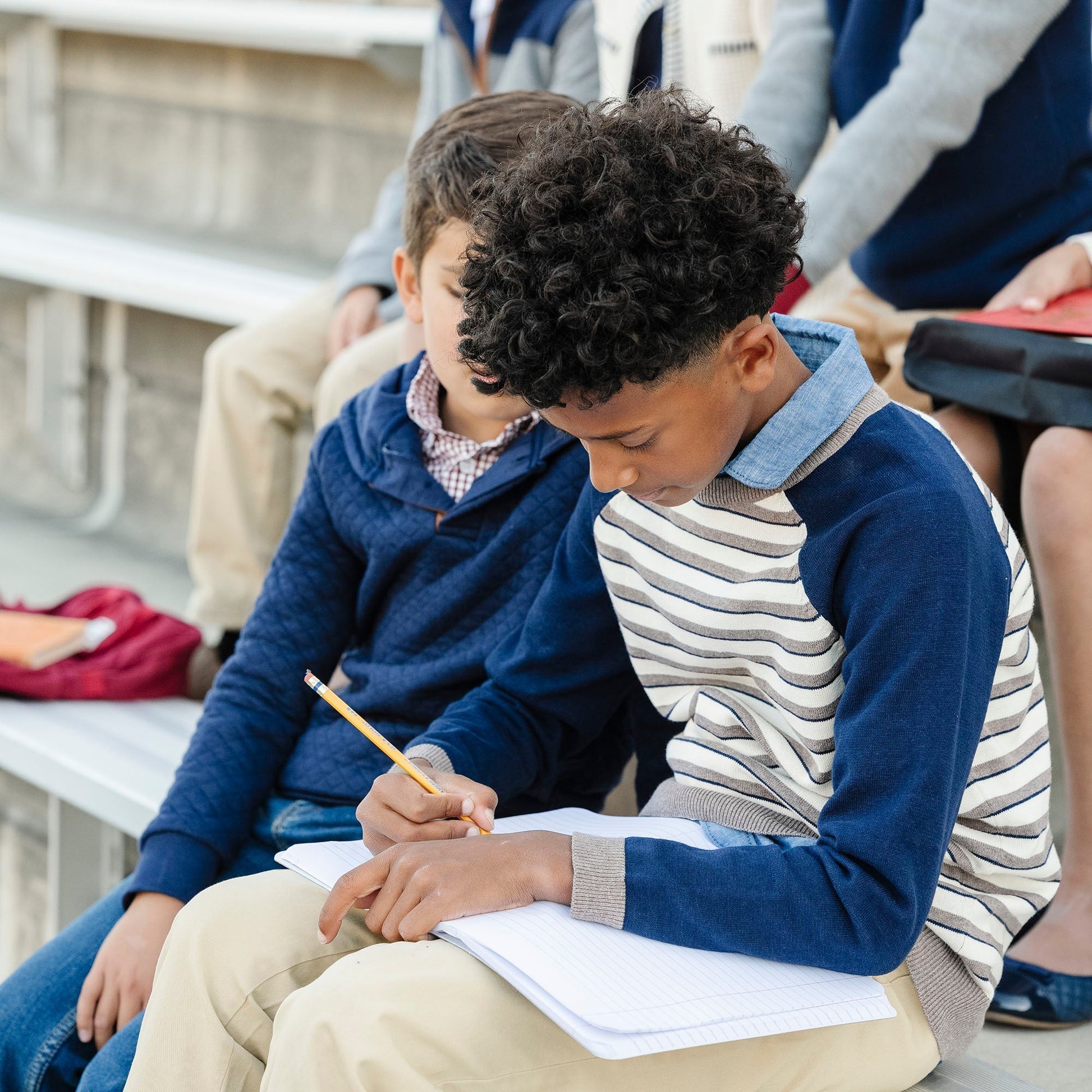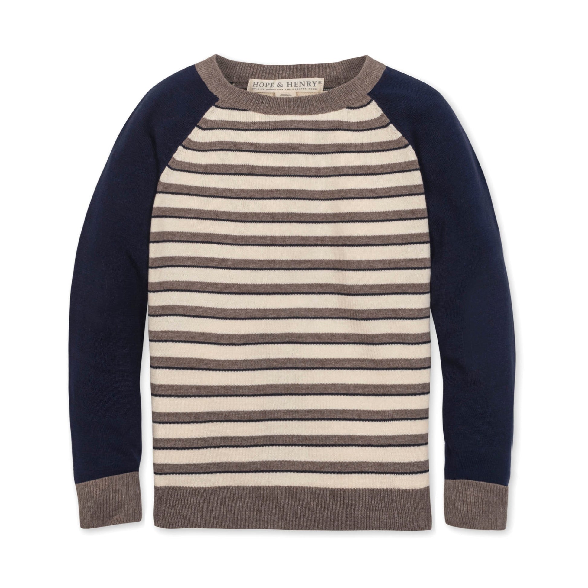 Our stylish fine gauge raglan sweater is crafted in soft organic cotton and is the perfect piece to transition into cooler weather. Features sophisticated colorblocking at the sleeves and rib trim. Pairs perfectly with our collection of organic cotton chinos and cords for a sporty look he will love.
