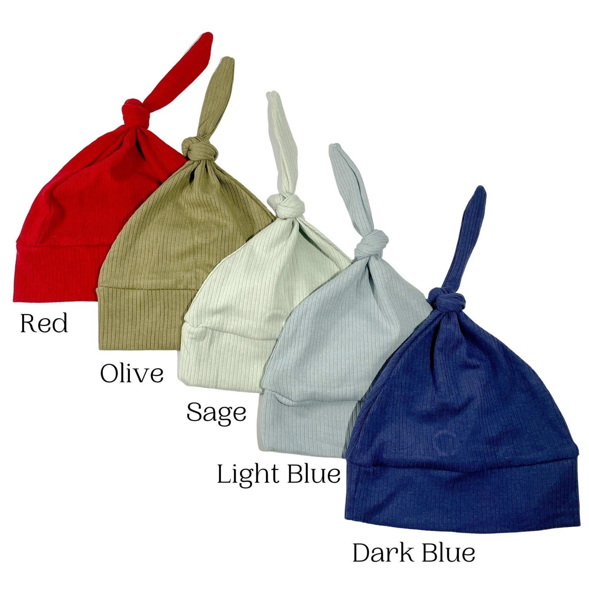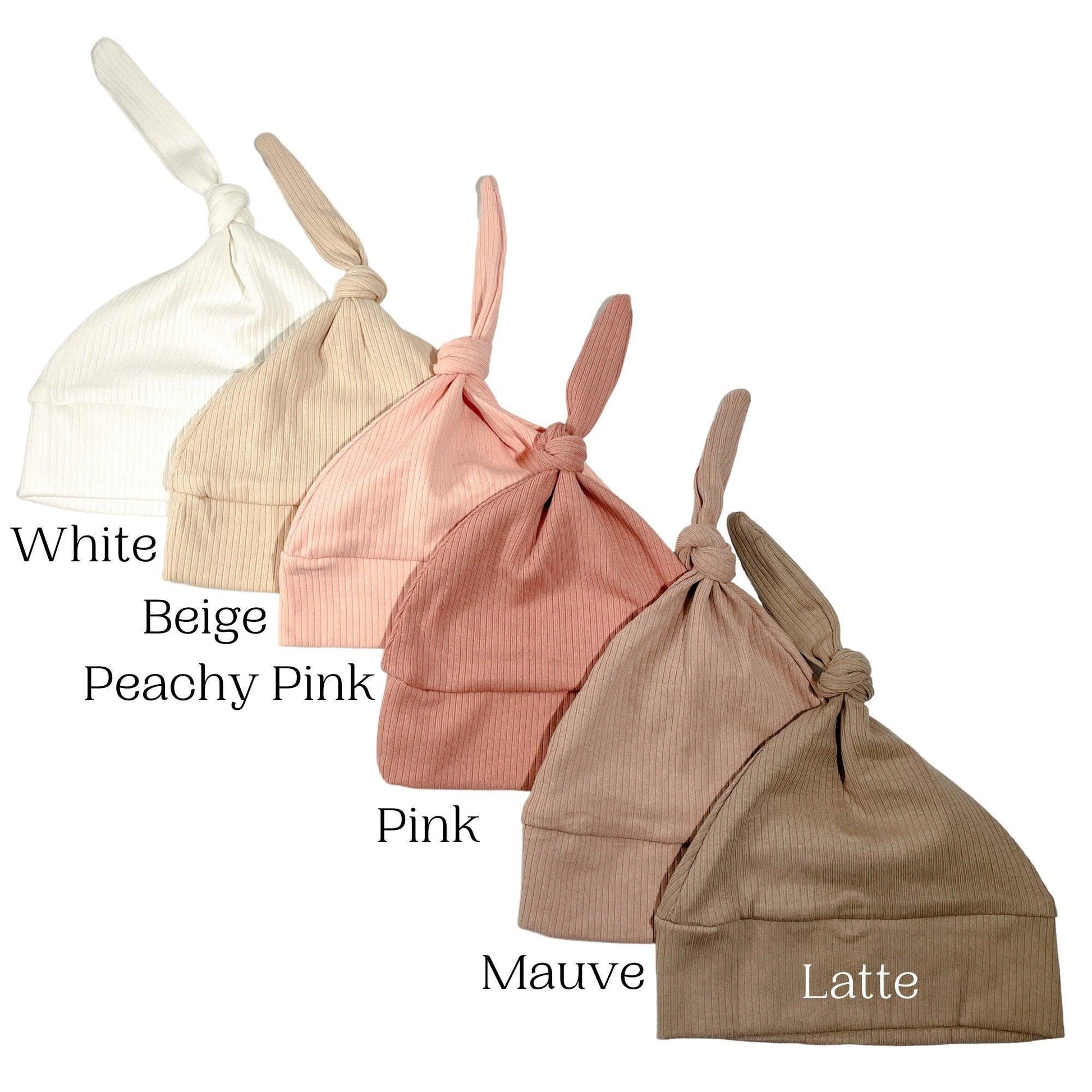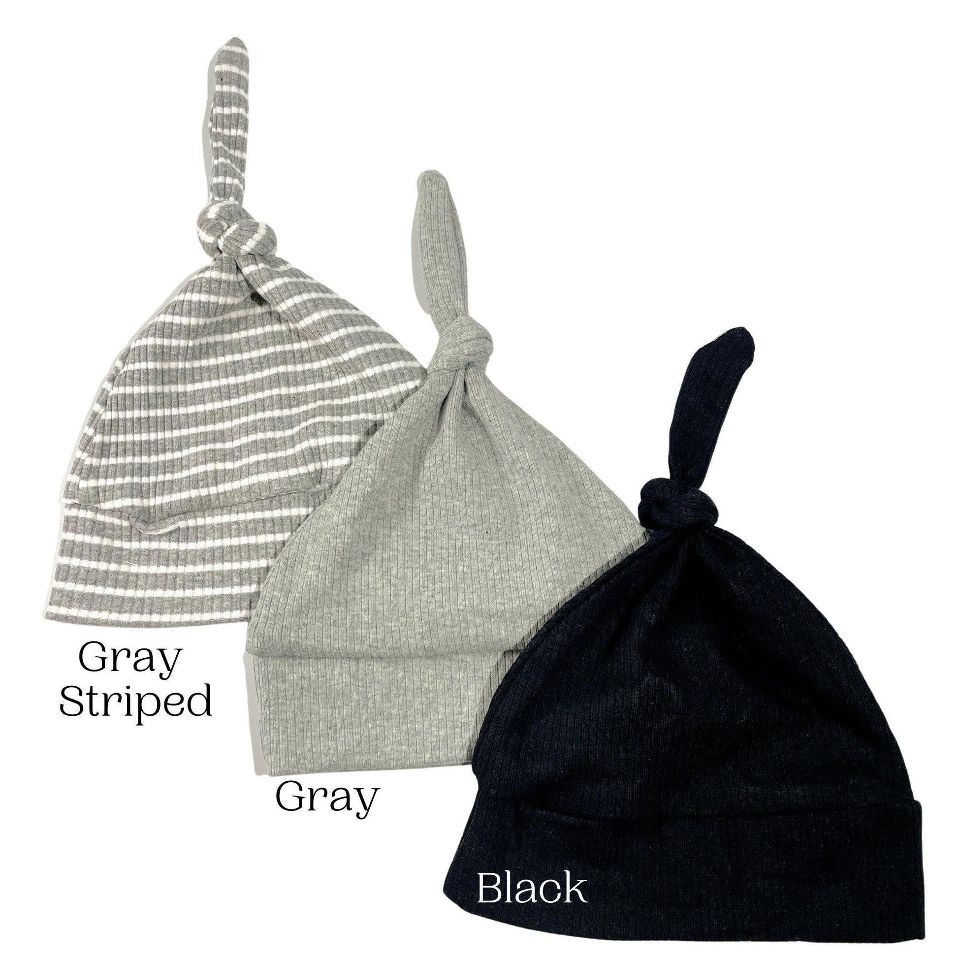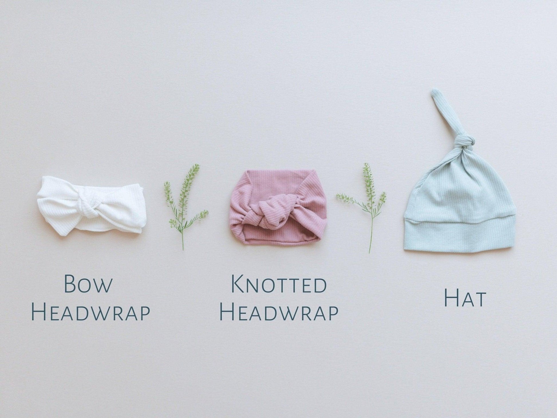 Ribbed knotted henley-style baby gown. Cotton. Knots easily at the bottom for easy, quick diaper access. Foldover mittens at cuffs. Newborn size. Matching hats and headwraps available, sold separately.