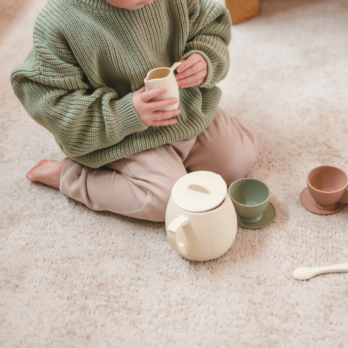 Wrap them in easy warmth with the Sutton Chunky Knit Oversized Sweater in Sage. Knit from ultra-soft organic cotton with OEKO-TEX® certified yarns and dyes, it’s breathable, gentle on sensitive skin, and cozy without bulk—perfect for cool days and year-round layering.
