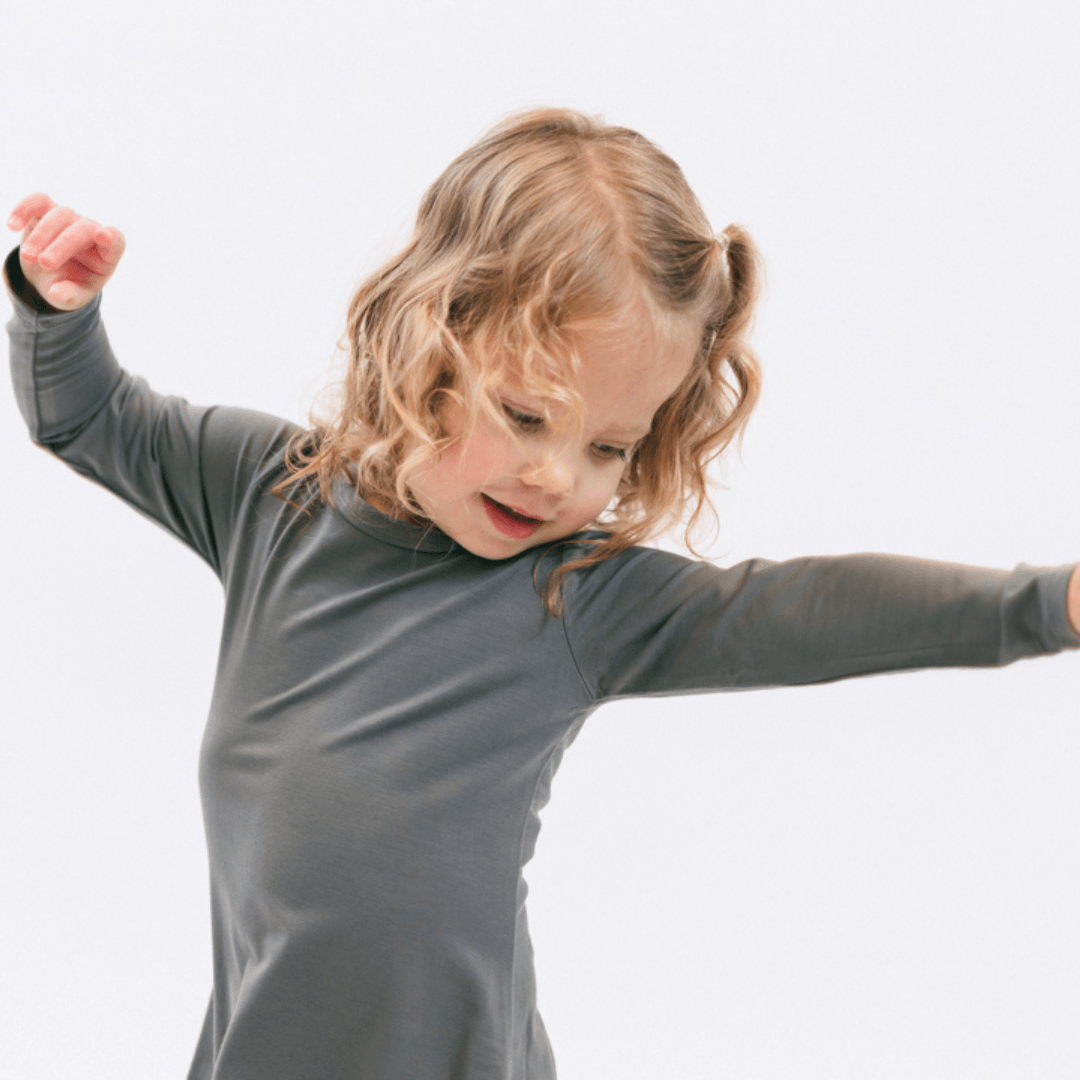 Twirl and whirl to your little heart's content! Soft, stretchy bamboo and an unrestrictive skirt allows for all day play!