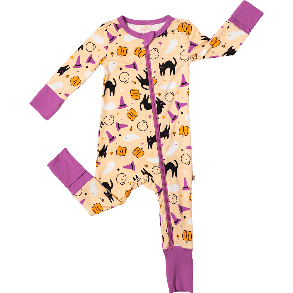 Ghoulishly fun days to moonlit magic nights, the Halloween collection is the perfect fall treat. Whimsical ghosts and hocus pocus printed on scarily-soft bamboo that your little one will want to wear year-round!