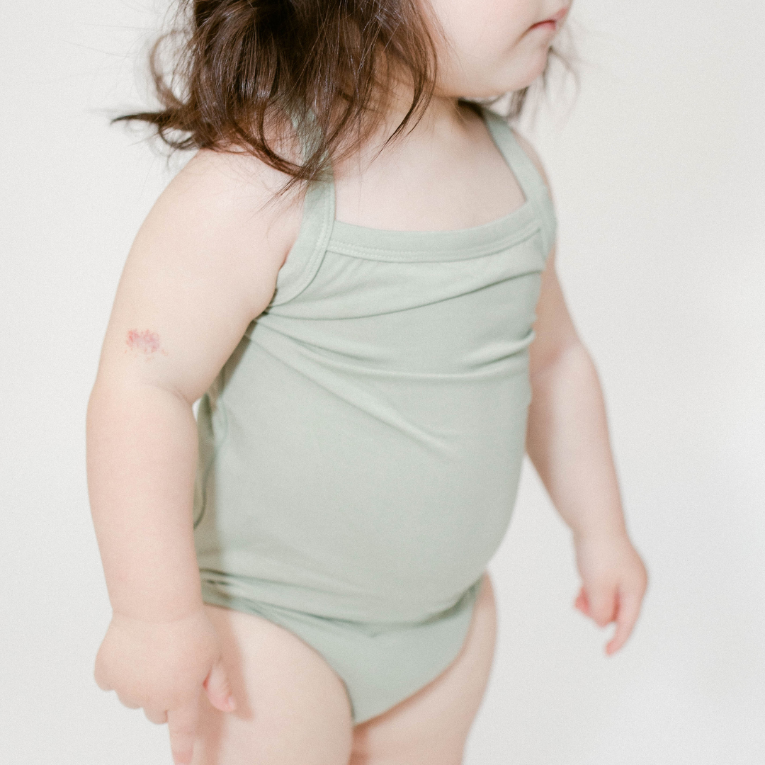 This spaghetti strap bodysuit made from soft bamboo was born for warm weather. The muted, nature-inspired colors make it an easy addition to every wardrobe.
